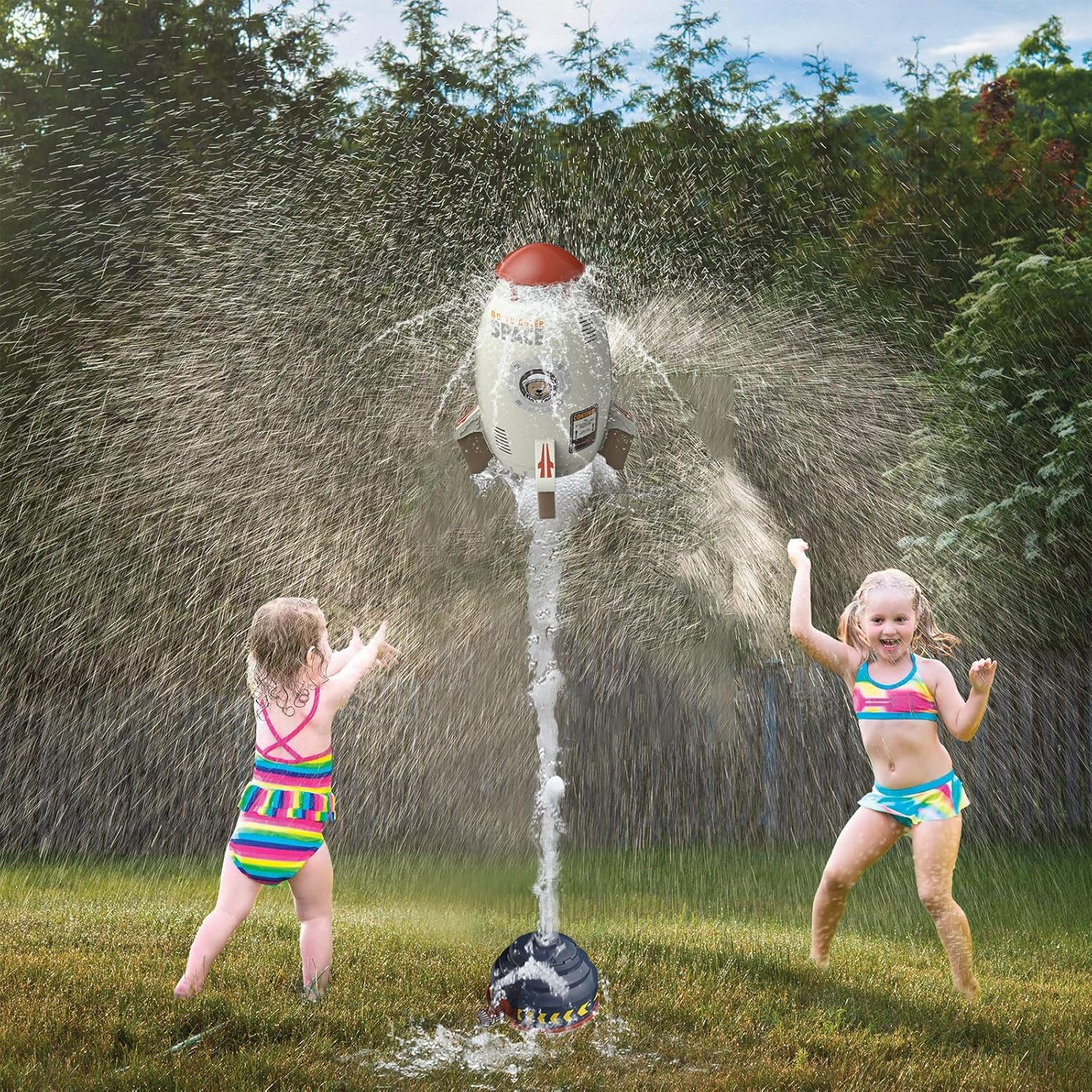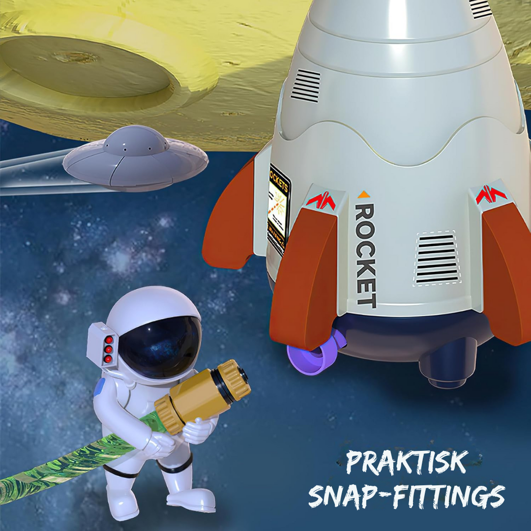 KidSplash™ er designet til nemhed. Tilslut den til din standard havslange, juster vandtrykket med et enkelt drej på hanen, og se hvordan raketten begynder at dreje, sprøjte og endda lette!