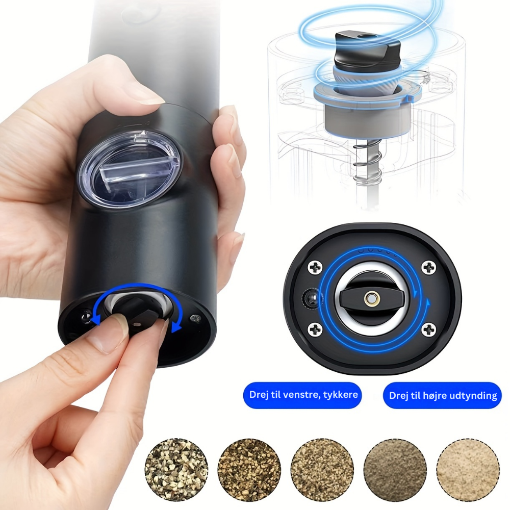 Det ergonomiske design og de smarte funktioner gør det nemt at krydre – hver gang. Den stærke, elektriske mekanisme sparer dig for besvær og giver et pålideligt resultat, uanset hvor meget du bruger den.