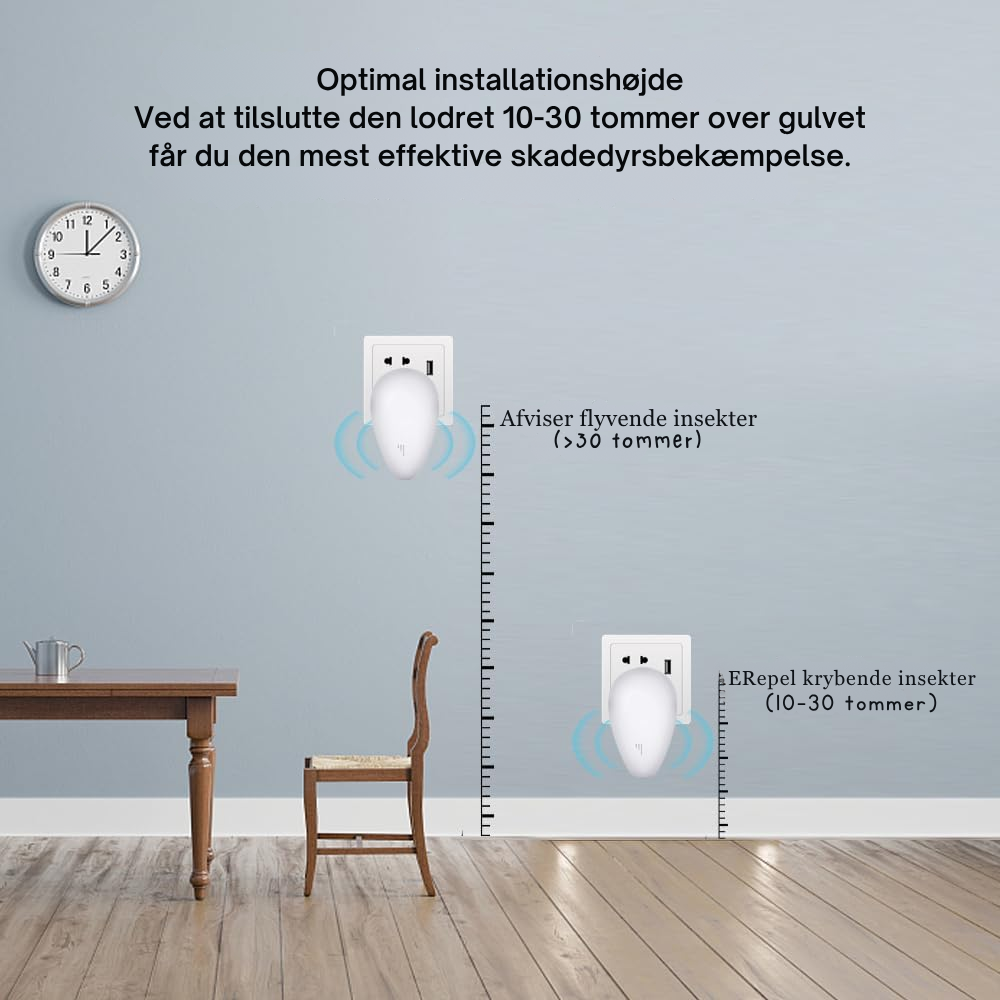 Børn er ekstra sårbare over for bakterier, der gemmer sig i skadedyrenes fodspor, afføring og urin. Med PestReject Pro™ behøver du ikke bruge kemikalier, der kan skade helbredet. Lyden er uhørlig for mennesker og kæledyr, men for skadedyrene er den ubærlig – og driver dem væk for altid.