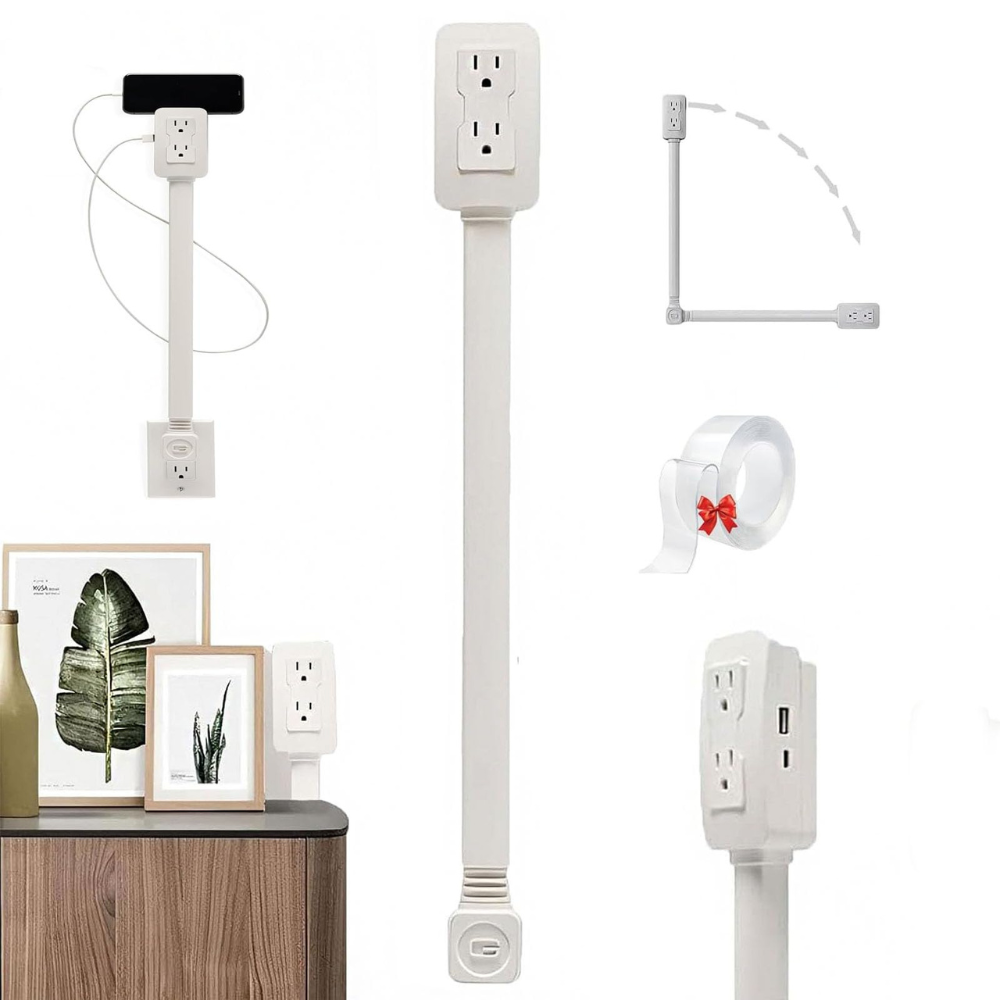 Denne strømkontakt forlænger gør det muligt for dig at udnytte hver stikkontakt i dit hjem fuldt ud. Det 180° rotationsdesign giver dig mulighed for frit at justere retningen uden at optage plads, hvilket gør opladning mere bekvemt! Den øverste holder kan holde din mobiltelefon, og den kan strækkes til forskellige brugs-scenarier. Den kan installeres uden at bore huller og vil ikke skade væggen, hvilket gør din hjemmeopladning mere ryddelig og effektiv!