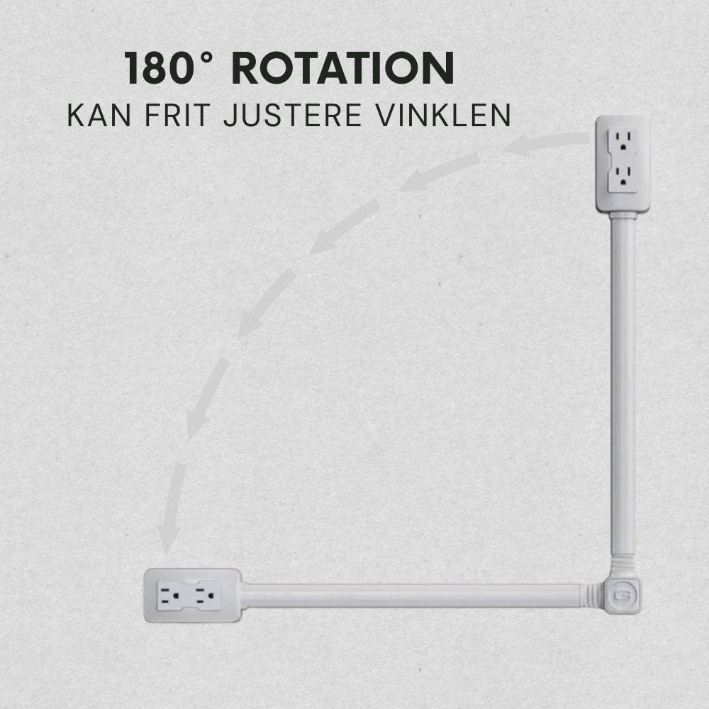 🔄 180° rotation: juster frit vinklen uden at være begrænset af stikkontaktens position.
